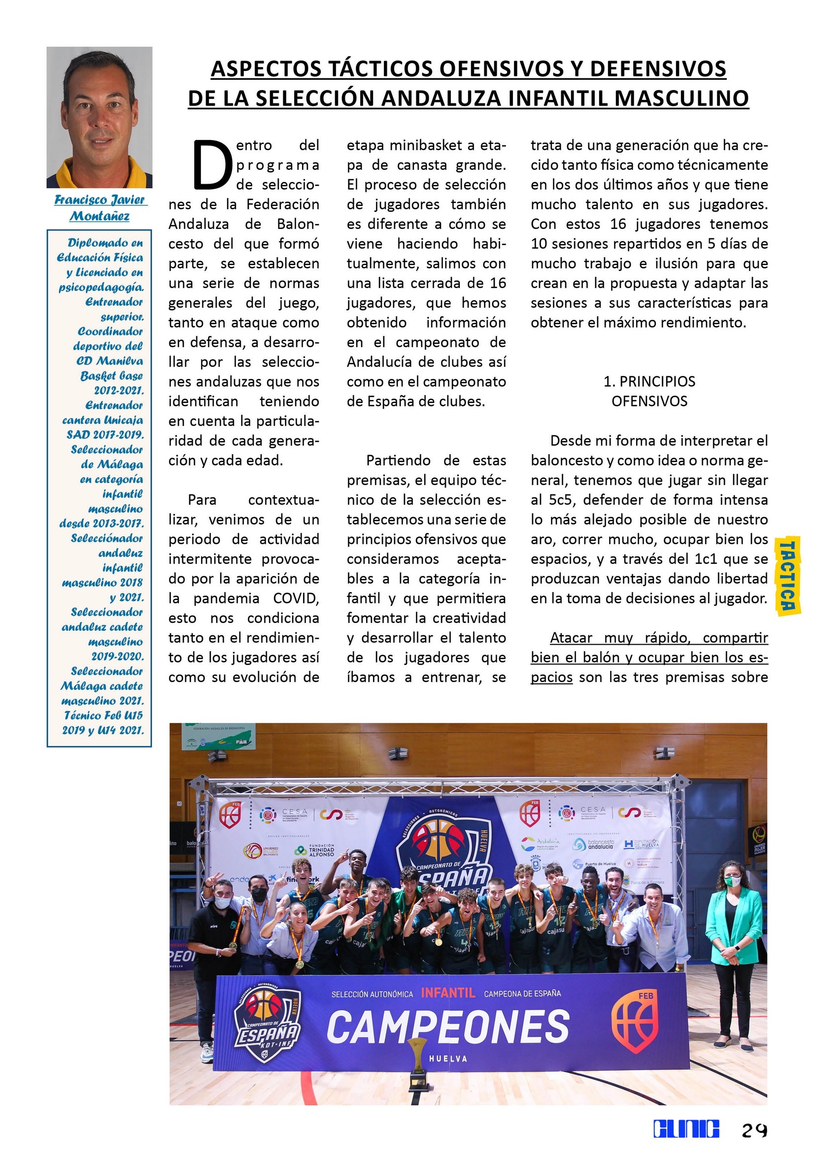 Llegamos al ecuador de nuestra publicación para ofreceros la crónica táctica que nos regala Francisco Javier Montañez (Seleccionador FAB y último campeón de España Infantil Masculino). Su trabajo “Aspectos Tácticos Ofensivos y Defensivos de la Selección Andaluza Infantil Masculina” te sumergirá en los principios ofensivos y defensivos que entrena con sus jugadores y llevó a su equipo a lograr este gran éxito.