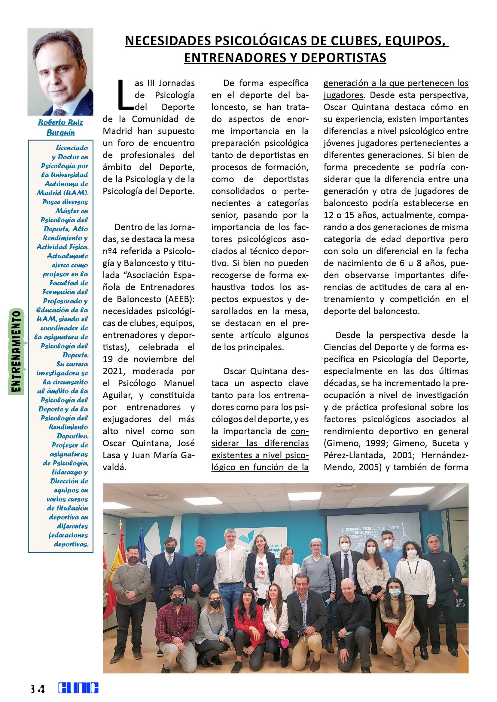 En este momento, Roberto Ruiz Barquín (Licenciado y Doctor en Psicología por la Universidad Autónoma de Madrid y asistente a las III Jornadas de Psicología del Deporte de la Comunidad de Madrid), en su trabajo “Necesidades Psicológicas de Clubes, Equipos, Entrenadores y Deportistas” desgrana los contenidos de la mesa moderada por el Psicólogo Manuel Aguilar en la que participaron entrenadores y exjugadores del más alto nivel, como Oscar Quintana, José Lasa y Juan María Gavaldá.