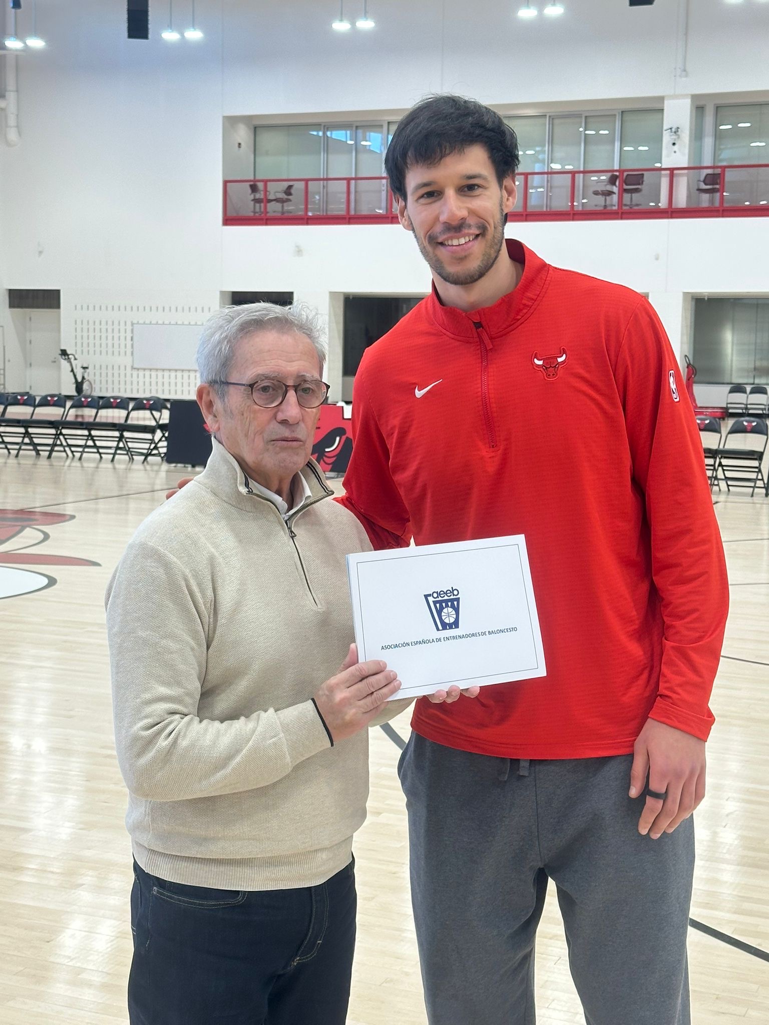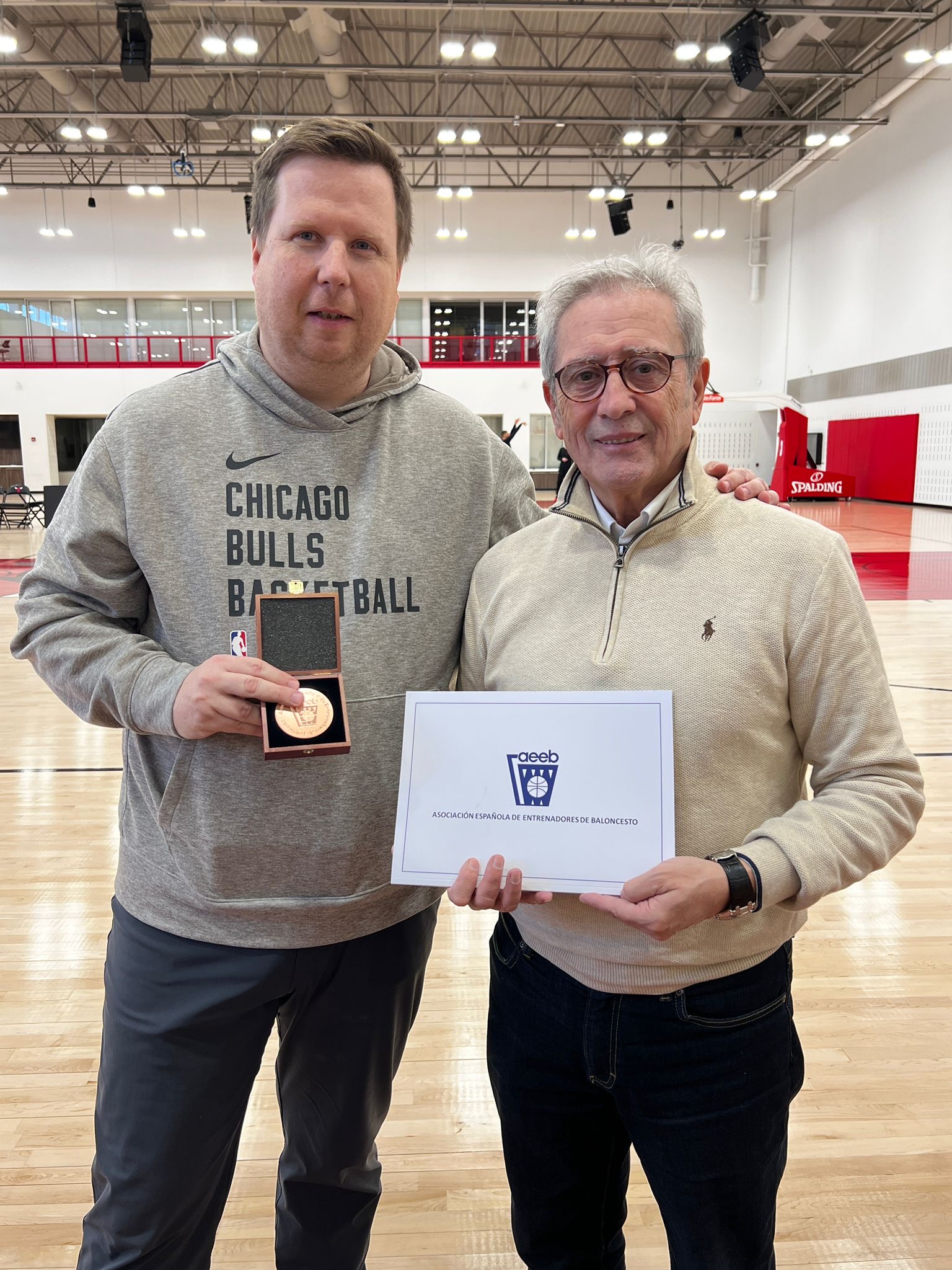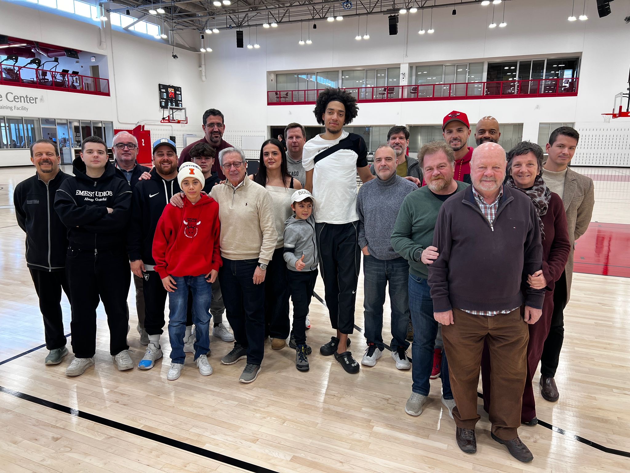 La séptima jornada del viaje llevó al grupo al corazón de uno de los grandes iconos del baloncesto mundial: las instalaciones de entrenamiento de los Chicago Bulls, situadas junto al mítico United Center. Desde el primer minuto, la expedición fue recibida con una notable cercanía por parte de Pat Connelly, Assistant General Manager de la franquicia, quien guió al grupo por la pista de entrenamiento y explicó con detalle la estructura del staff técnico y el funcionamiento interno del equipo.