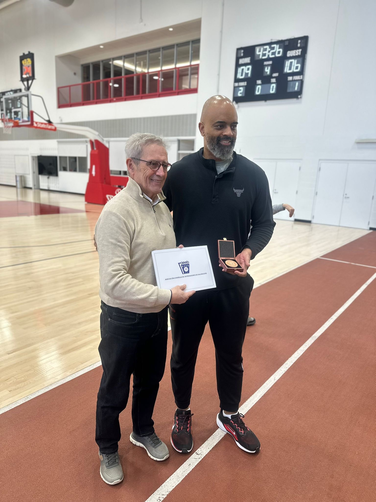 Por la tarde, la expedición se desplazó al Whitney Young High School, donde asistió a un partido del equipo Junior Varsity masculino. El Coach Ty Slaughter y varias jugadoras del equipo femenino acompañaron al grupo durante la visita, que culminó con un emotivo intercambio de obsequios, un gesto de fraternidad que puso en valor los vínculos humanos creados a lo largo del viaje.