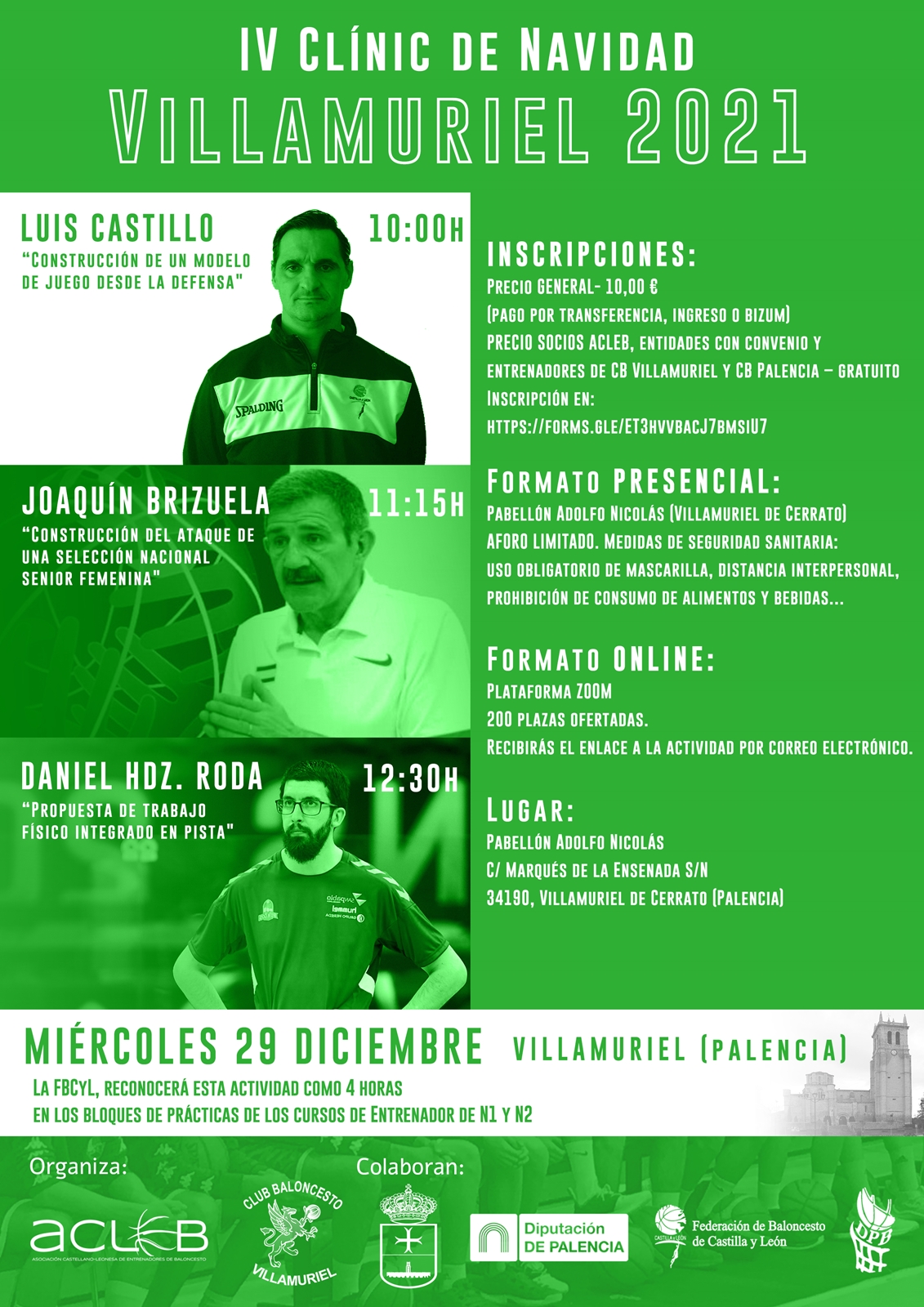 El próximo 29 de diciembre la Asociación Castellano y Leonesa de Entrenadores de Baloncesto y el Club Baloncesto Villamuriel, con la colaboración de la Federación de Baloncesto de Castilla y León, el Ayuntamiento de Villamuriel de Cerrato, la Diputación de Palencia y la Delegación Palentina de Baloncesto, organizan el IV Clínic de Navidad Villamuriel de Cerrato 2021.