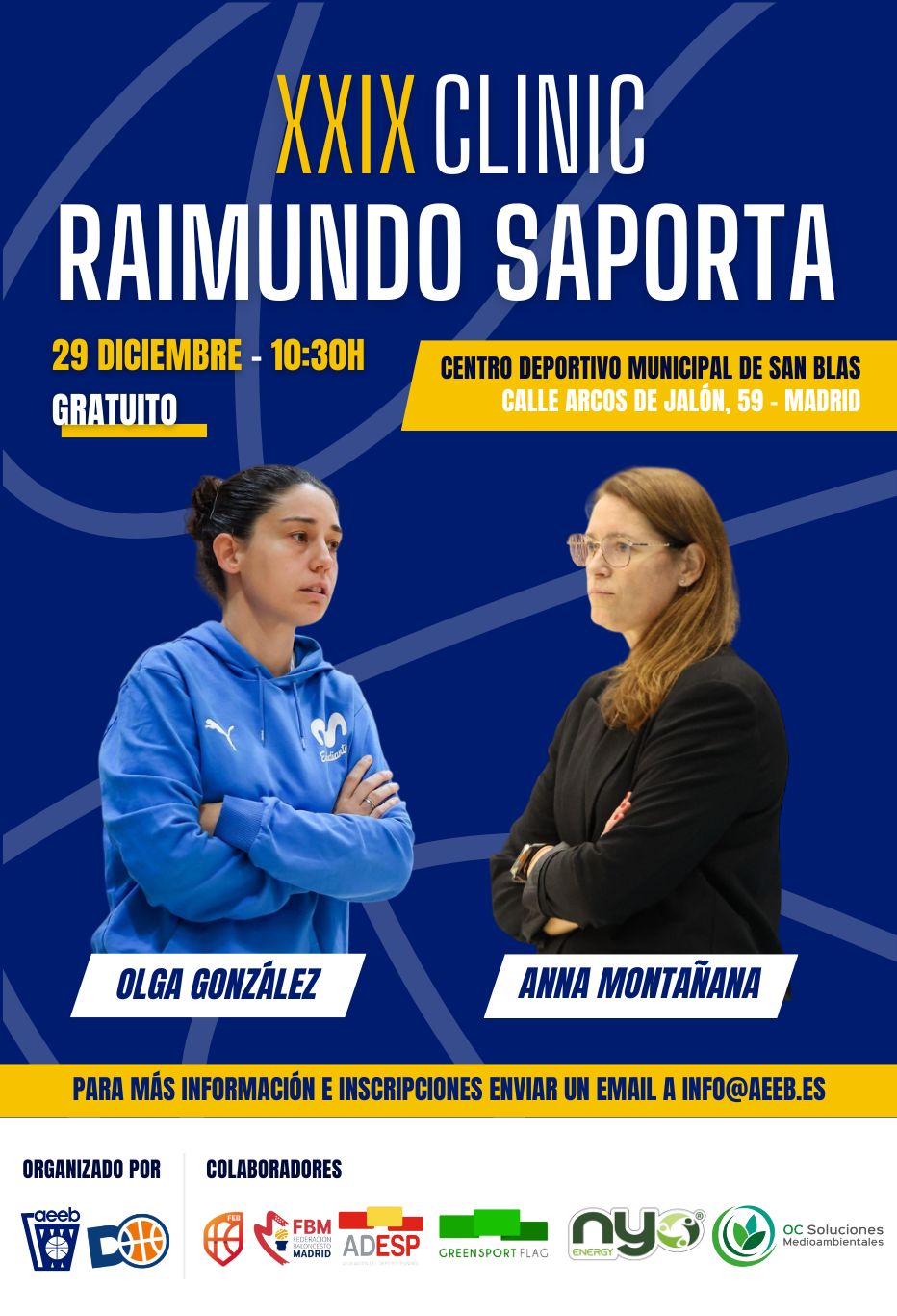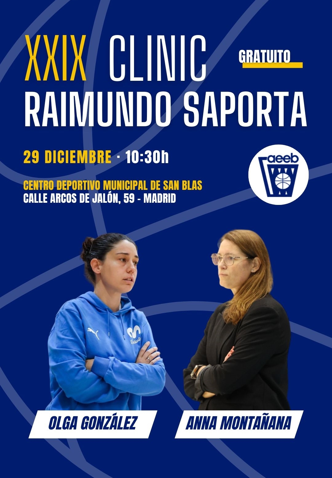 La Asociación Española de Entrenadores de Baloncesto (AEEB) y el Club Distrito Olímpico organizan, el próximo 29 de diciembre de 2025, el XXIX Clínic Raimundo Saporta, en el Centro Deportivo Municipal de San Blas (Calle Arcos de Jalón, 59 – Madrid).