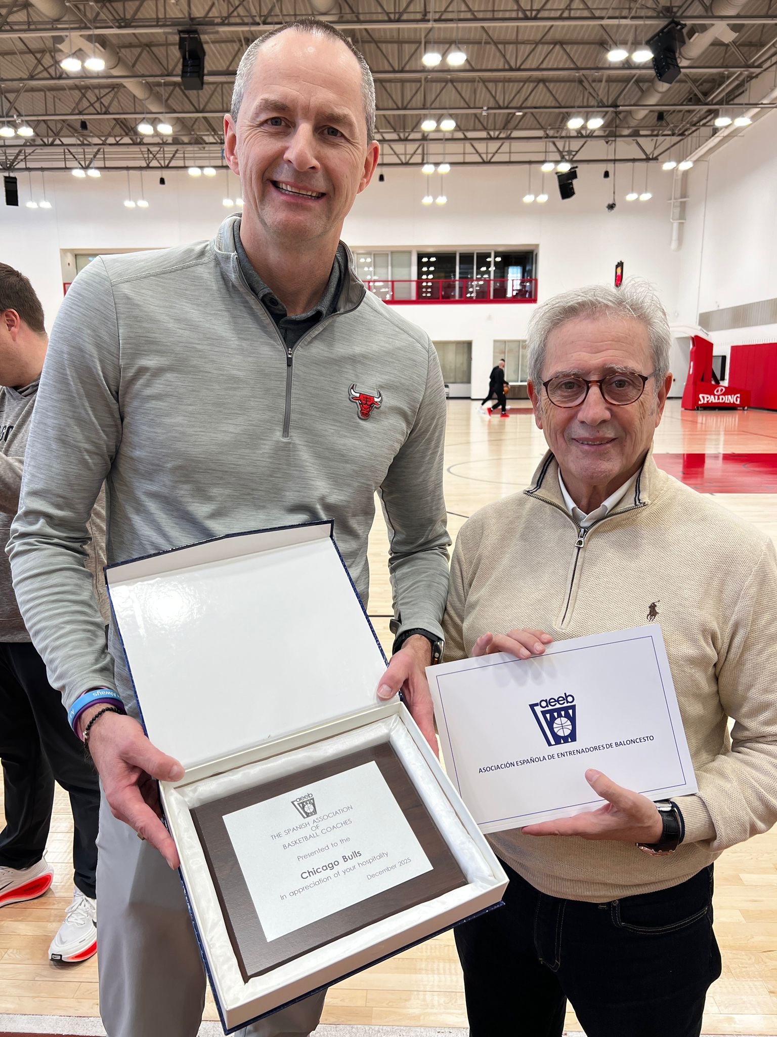 La séptima jornada del viaje llevó al grupo al corazón de uno de los grandes iconos del baloncesto mundial: las instalaciones de entrenamiento de los Chicago Bulls, situadas junto al mítico United Center. Desde el primer minuto, la expedición fue recibida con una notable cercanía por parte de Pat Connelly, Assistant General Manager de la franquicia, quien guió al grupo por la pista de entrenamiento y explicó con detalle la estructura del staff técnico y el funcionamiento interno del equipo.