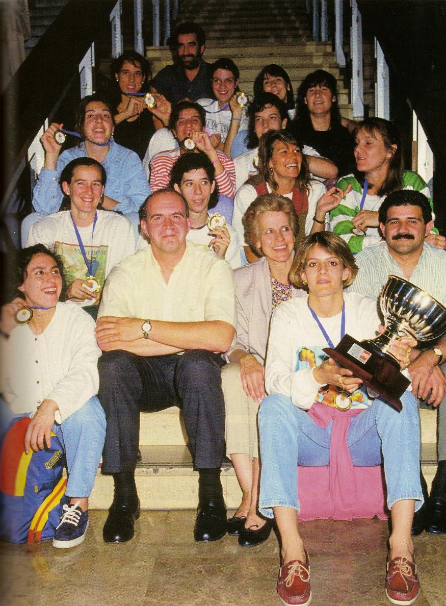 Su aportación al baloncesto español se extiende también al ámbito de las selecciones nacionales. Coro Domínguez ha formado parte de distintos equipos técnicos en selecciones de varias categorías, participando en más de 300 partidos internacionales. En 1993 fue delegada y jefa de equipo de la selección que conquistó la medalla de oro en el Campeonato de Europa, un logro histórico.