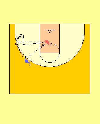 Explicación: Desde espacio reducido defensora y atacante se van pasando balón con pases cortos y rápidos. Cuando jugadora atacante quiera, saldrá hacia canasta, tiene dos opciones, lateral o de frente, defensora tendrá que recuperar y ponerse totalmente delante de la atacante.