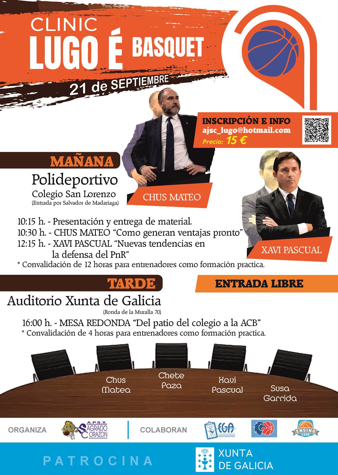La APSX Sagrado Corazón vuelve a apostar por el baloncesto con la celebración de su ya tradicional clinic “Lugo é Basquet”, que tendrá lugar el próximo 21 de septiembre en la ciudad de Lugo, en una jornada que combinará formación técnica y debate abierto sobre el crecimiento del deporte.