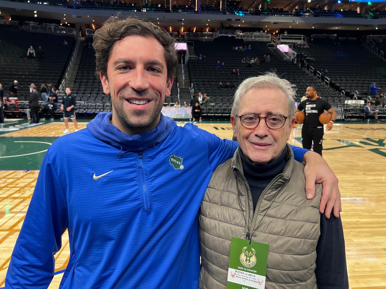 Antes del partido, el grupo vivió un momento especialmente significativo gracias al head coach de los Brooklyn Nets, Jordi Fernández, quien dedicó unos minutos a conversar con los participantes. El gesto fue recibido con enorme gratitud, tanto por su cercanía como por lo que representa para el baloncesto iberoamericano contar con referentes de este nivel comprometidos con la formación de entrenadores.
