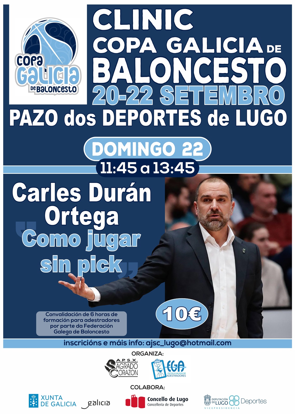 El domingo 22, a partir de las 11:45, en el propio Pazo dos Deportes (Lugo), Carles Durán, exentrenador del Joventut de Badalona y otros equipos de la Liga ACB, dará una charla para entrenadores bajo el título: "Cómo jugar sin pick", con una duración de dos horas. Dicha charla se desarrollará con ejemplos prácticos en pista, y además convalidará 6 horas de formación para entrenadores en prácticas.