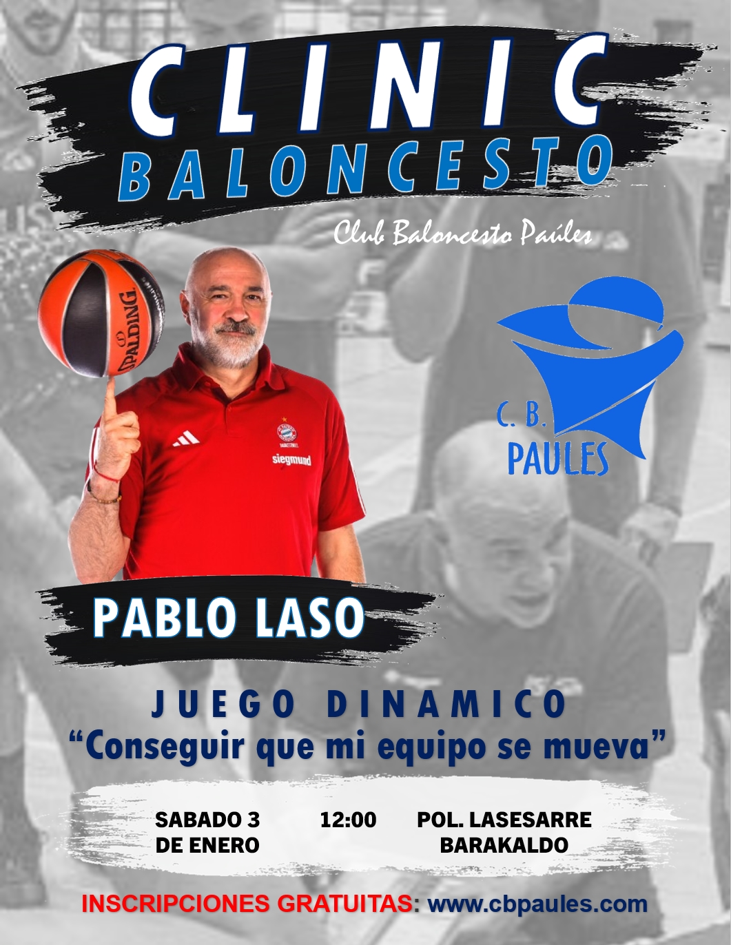 CB Paúles ha confirmado la celebración de un Clínic Gratuito el próximo sábado 3 de enero, una iniciativa con la que el club continúa reforzando su apuesta por la formación de entrenadores y la difusión del conocimiento técnico. Con el objetivo de acercar experiencias de alto nivel al mayor número posible de profesionales y aficionados, la entidad pone a disposición de todos los interesados una jornada formativa de gran relevancia.